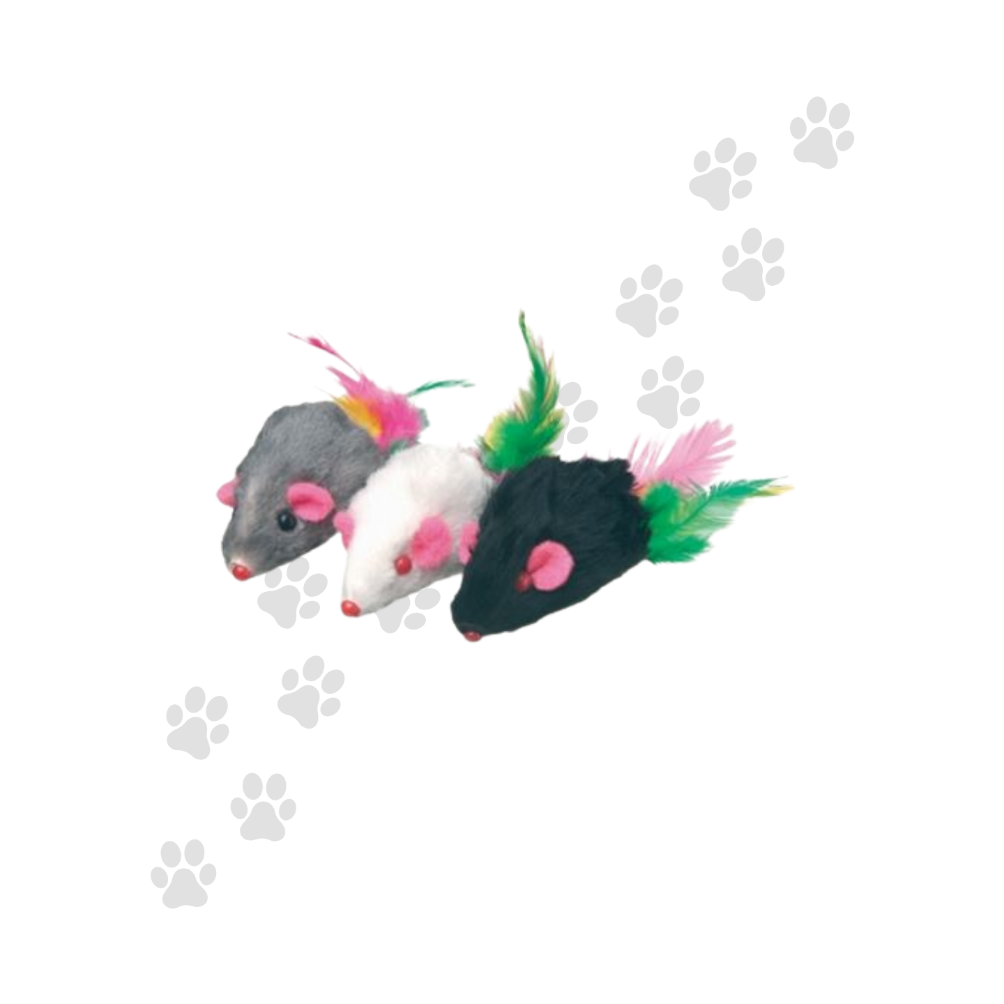 Topini giocattolo piccoli e vivaci, pensati per allietare le ore di svago del tuo felino, combinando la forma classica del topino con l'aggiunta di una piuma, per un divertimento prolungato e l'attivazione del naturale istinto di caccia.