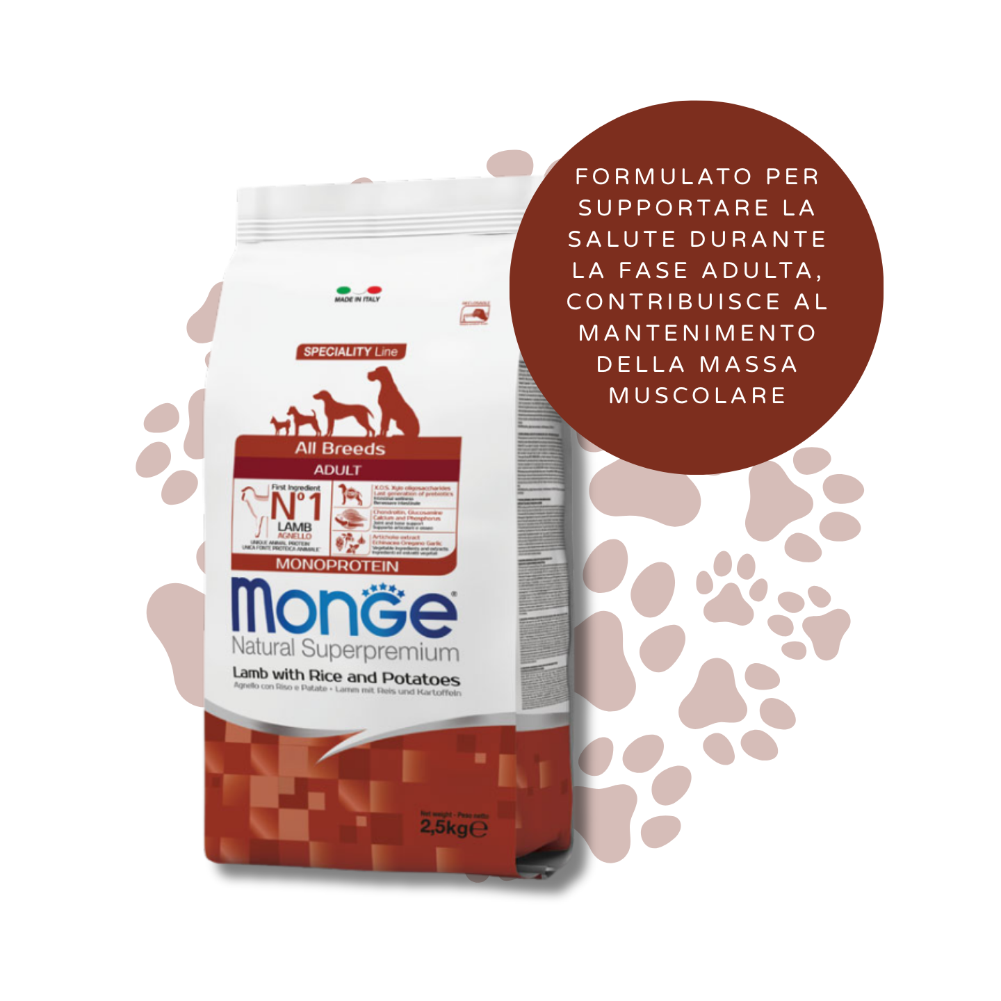 Offri al tuo cane un'alimentazione completa, gustosa e ricca di benefici grazie a Monge Natural Superpremium Monoprotein Adult Agnello Riso e Patate