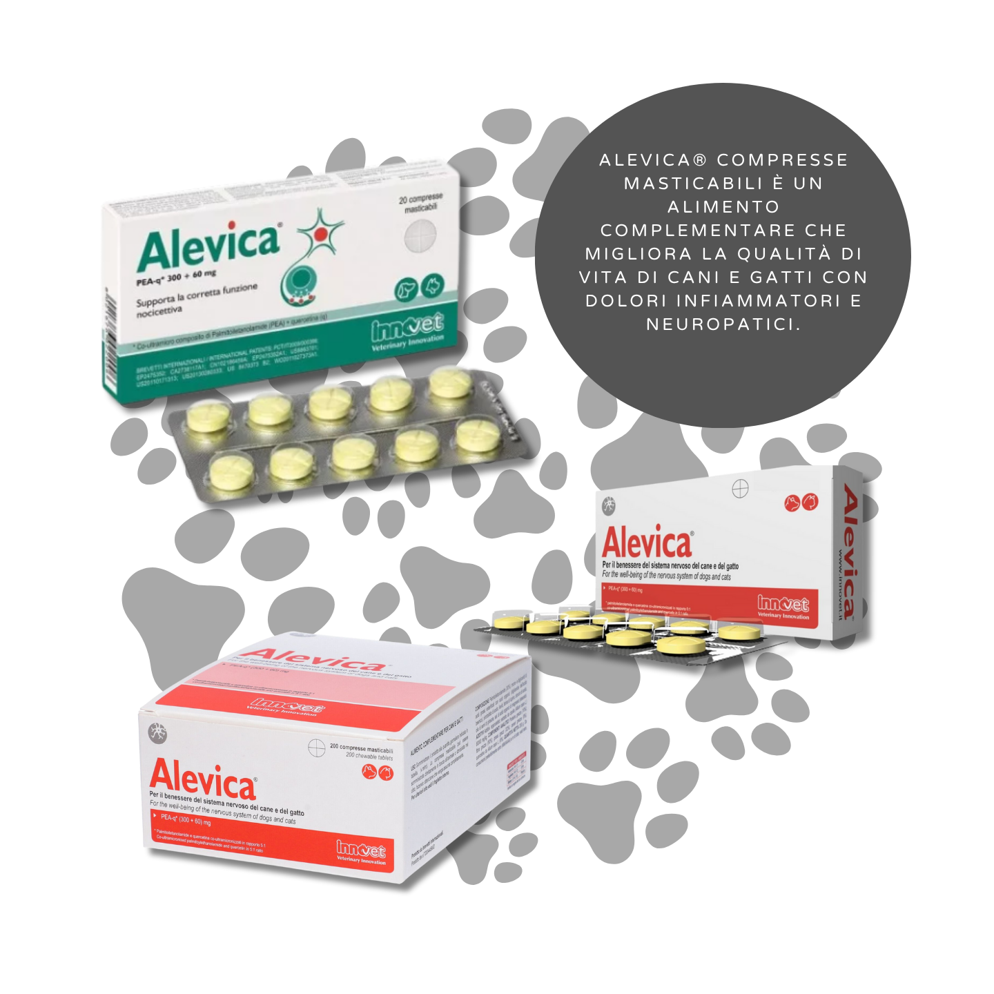 Alevica Compresse è un mangime complementare a supporto della gestione del dolore e dell'infiammazione in cani e gatti. Non è un farmaco, ma una combinazione sinergica di sostanze naturali che agiscono su più fronti per modulare la risposta infiammatoria e contribuire al benessere articolare e nervoso, aspetti cruciali per la qualità di vita del tuo animale. È un prodotto frutto della ricerca veterinaria più avanzata, pensato per offrire un aiuto sicuro ed efficace.