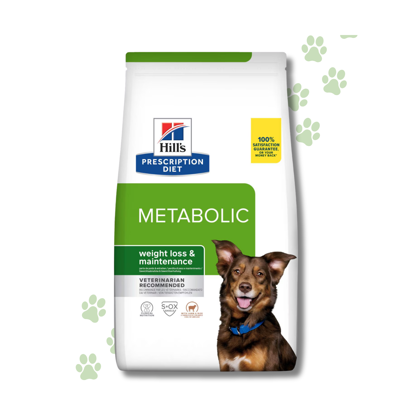 Mantenere il peso ideale può aiutare a condizionare l'aspettativa di vita, riducendo il rischio di insorgenza di patologie associate al peso. Nutrizionisti e veterinari Hill's hanno sviluppato Prescription Diet Metabolic nutrizione clinica formulata in maniera specifica per aiutare i cani a perdere peso e a mantenere il peso raggiunto. Agisce per vie naturali, sulla capacità unica del tuo cane ad utilizzare l'energia, realizzando una perdita di peso facile ed efficace . Questo alimento stimola la capacità innata del cane di bruciare il grasso che fornisce l'energia per una vita attiva. La sua miscela esclusiva di fibre aiuta il cane a sentirsi sazio e soddisfatto