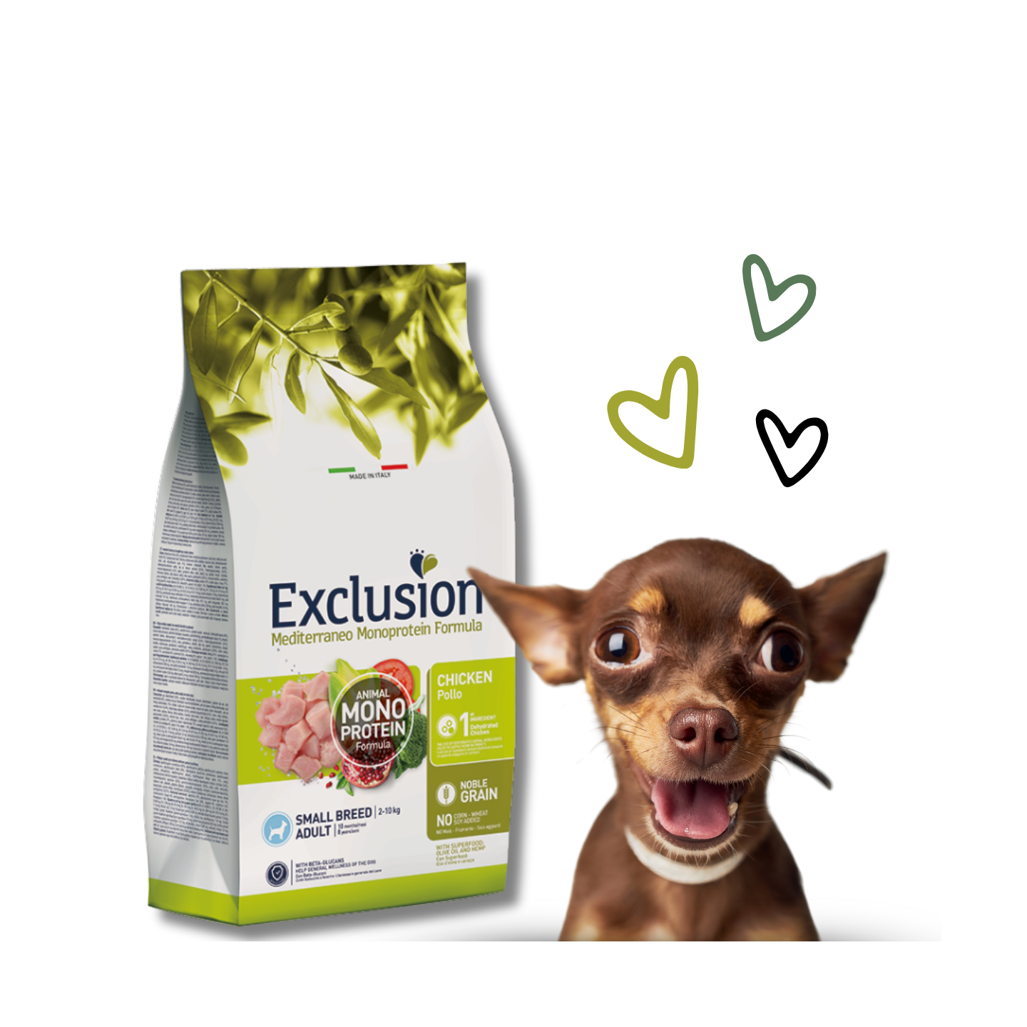Le crocchette per cani Exclusion Mediterraneo Adult Small Breed Pollo sono un alimento completo per cani adulti di taglia piccola. Formulate con un'unica fonte proteica animale disidratata, sono arricchite con canapa, olio d’oliva, pomodoro, melagrana, broccolo e cicoria, ricchi di antiossidanti che neutralizzano i radicali liberi e aiutano a ridurre il danno ossidativo.
