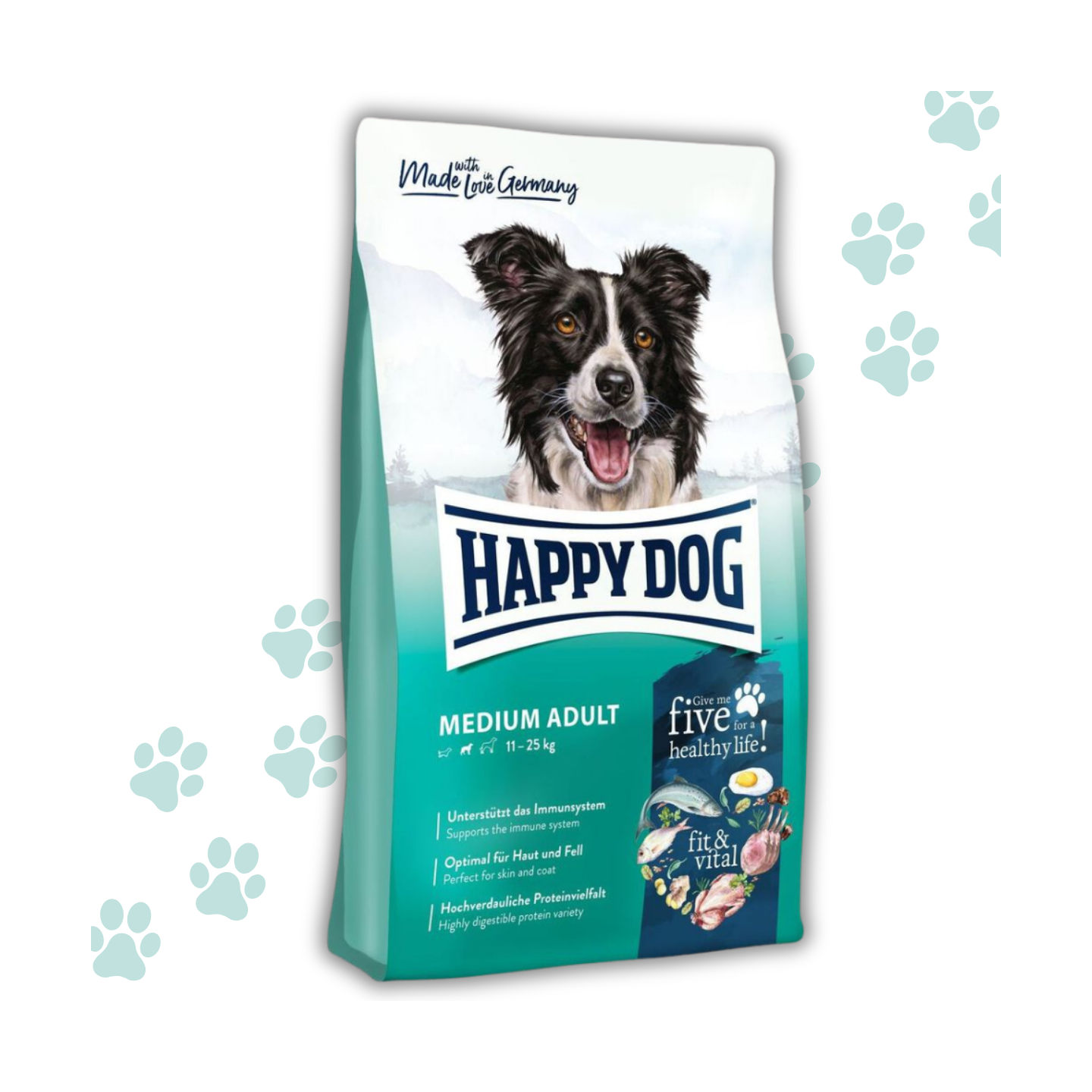Happy Dog Medium Adult è la scelta ideale per chi cerca un nutrimento completo e naturale. Questa ricetta è stata perfezionata per rispondere esattamente al fabbisogno energetico di un cane adulto tra gli 11 e i 25 kg.