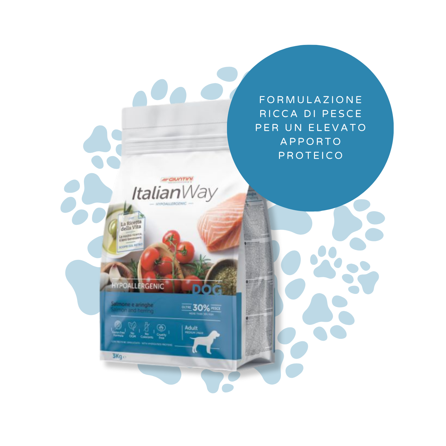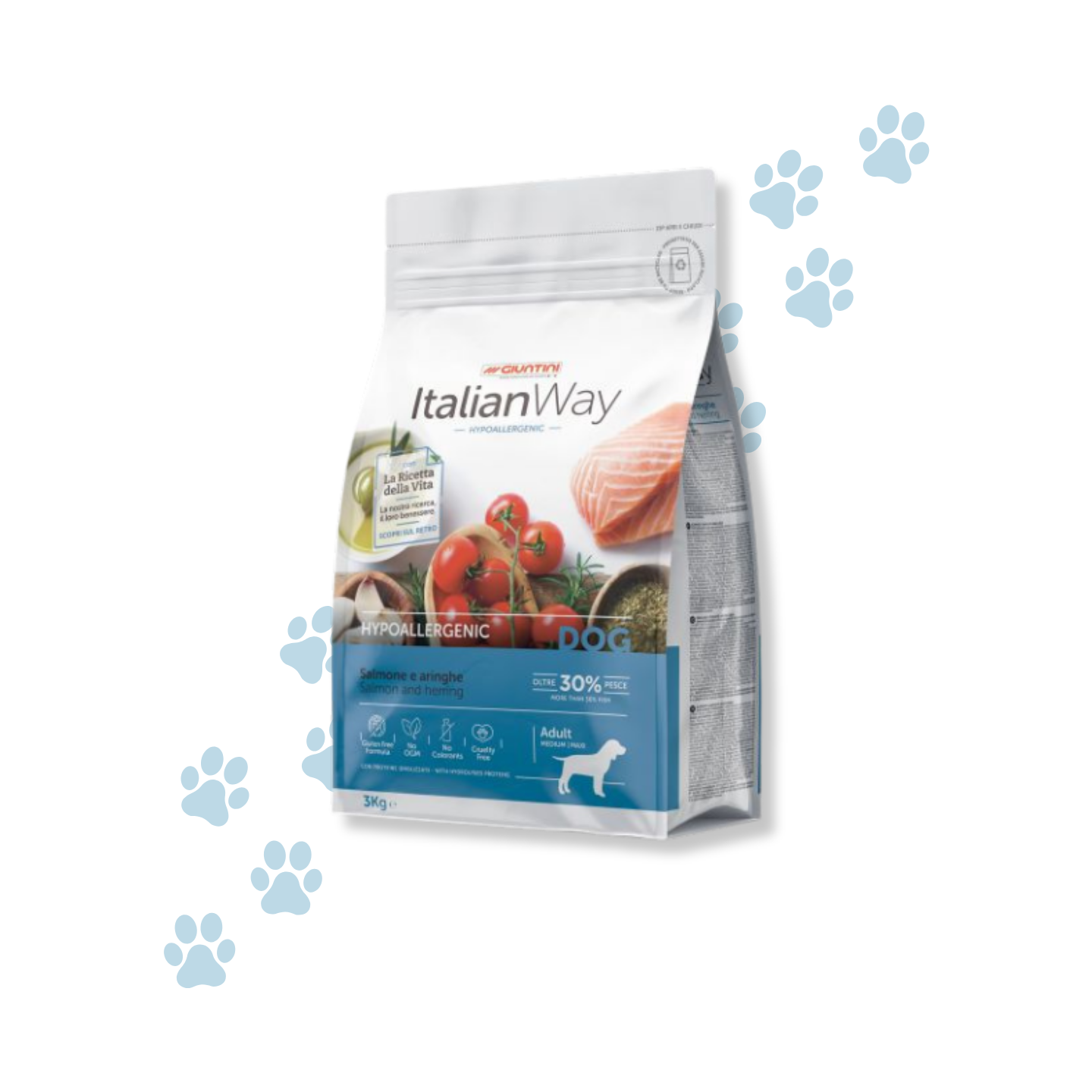 Offri al tuo piccolo amico il sollievo che merita con Italian Way Hypoallergenico con Salmone e Aringhe.