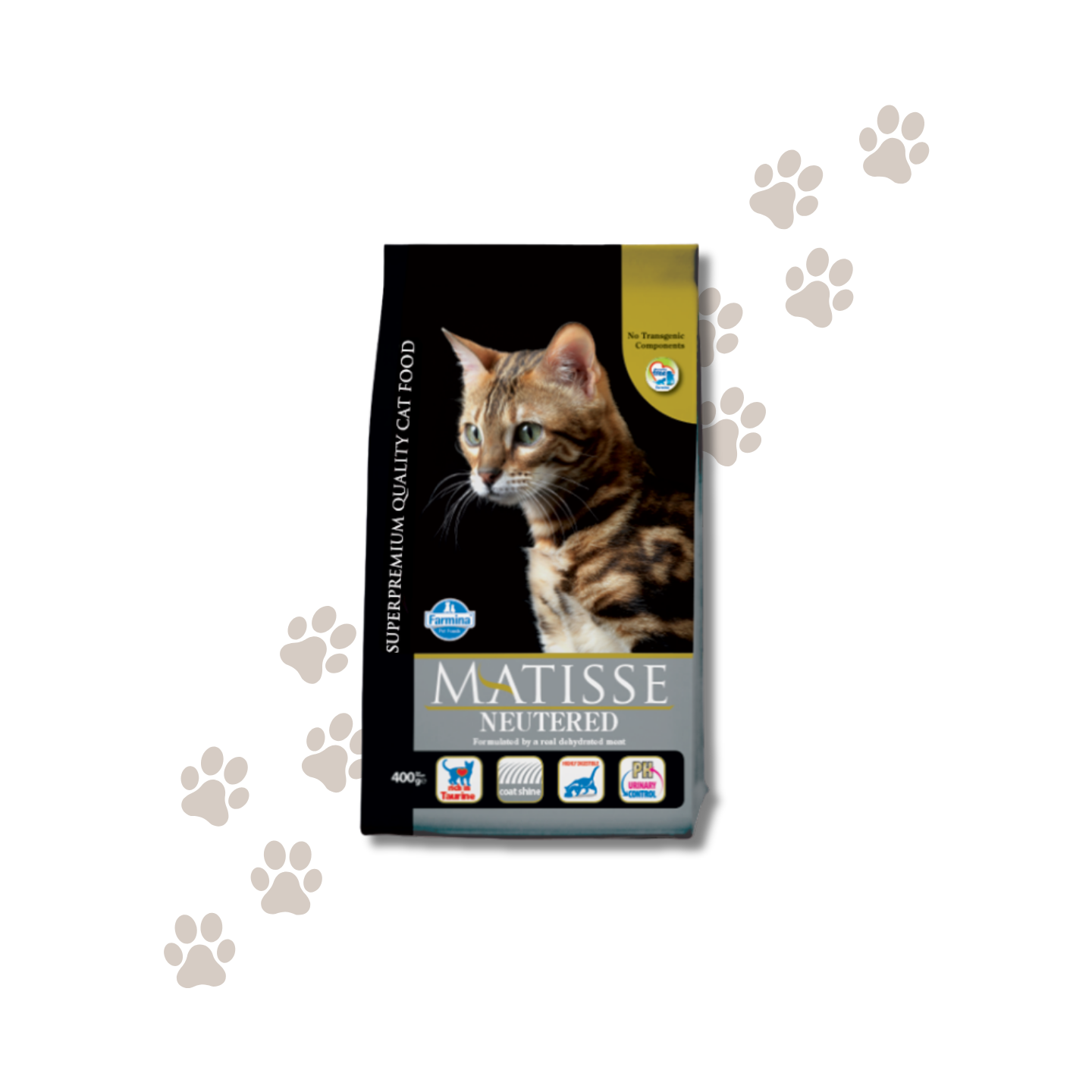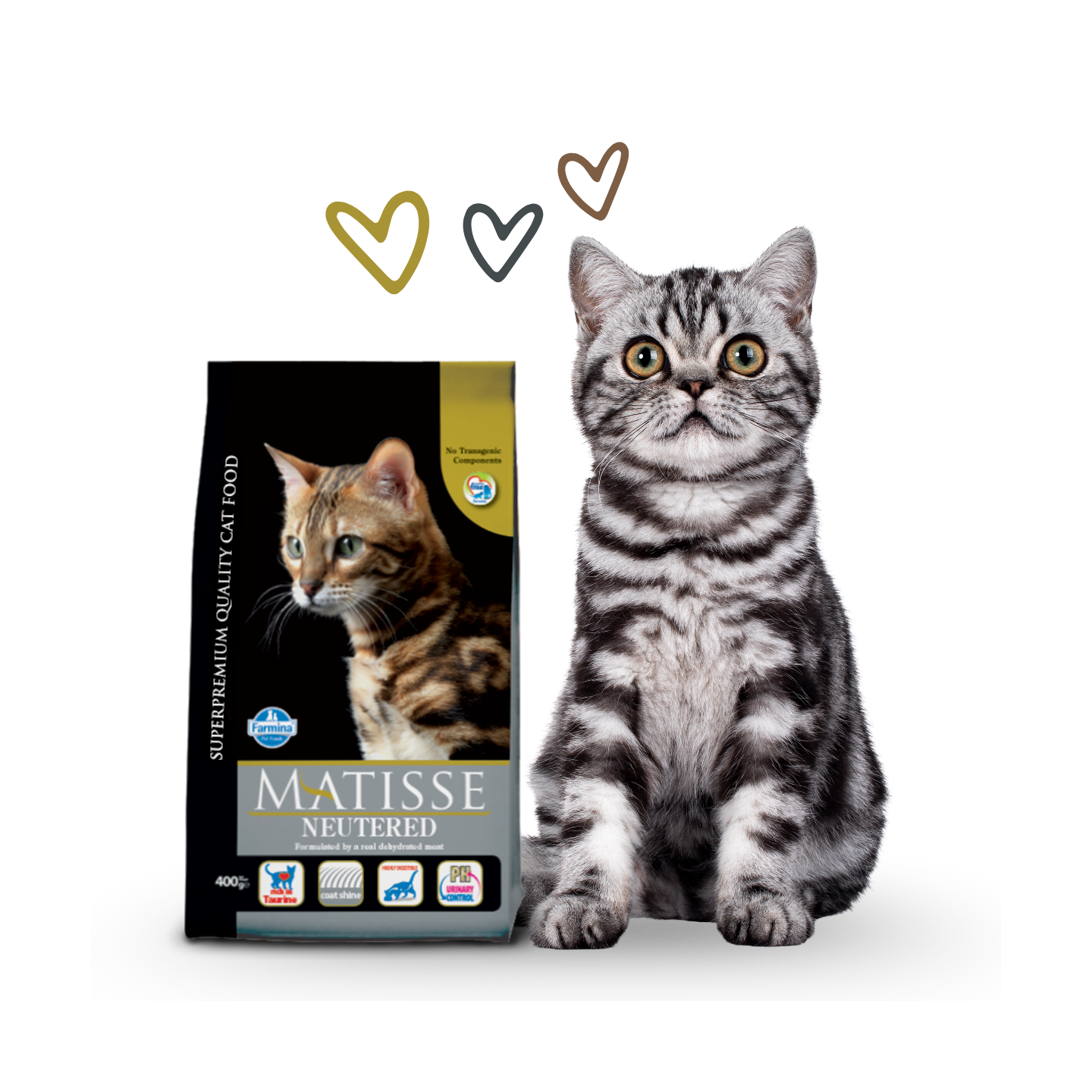 Matisse Neutered è l'alimento secco completo e bilanciato, studiato appositamente per rispondere a esigenze specifiche, garantendo al tuo gatto adulto sterilizzato una vita sana e felice.