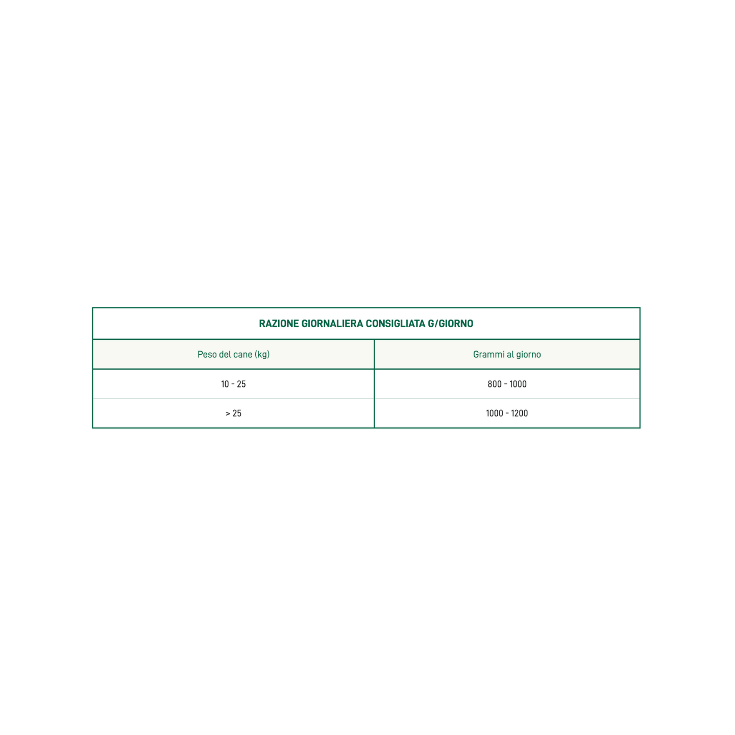 ⚠ Attenzione: Le informazioni fornite sono indicative e non sostituiscono il parere del tuo veterinario. Per qualsiasi esigenza specifica del tuo cane, consulta sempre un professionista.